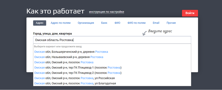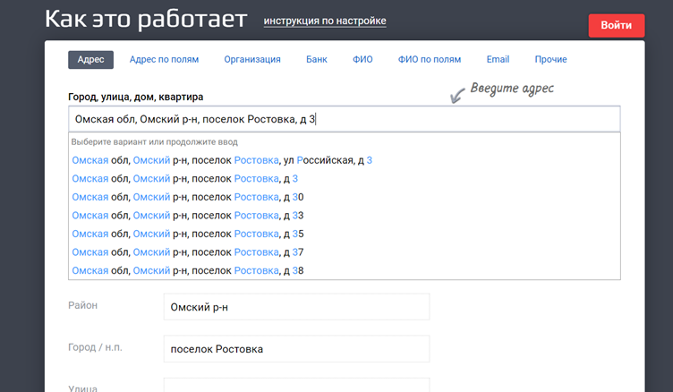 - Начните по порядку набирать сначала город, улицу, потом дом, строение – каждый раз выбирайте из списка предложенных адресов, чтобы уточнять и валидировать адрес