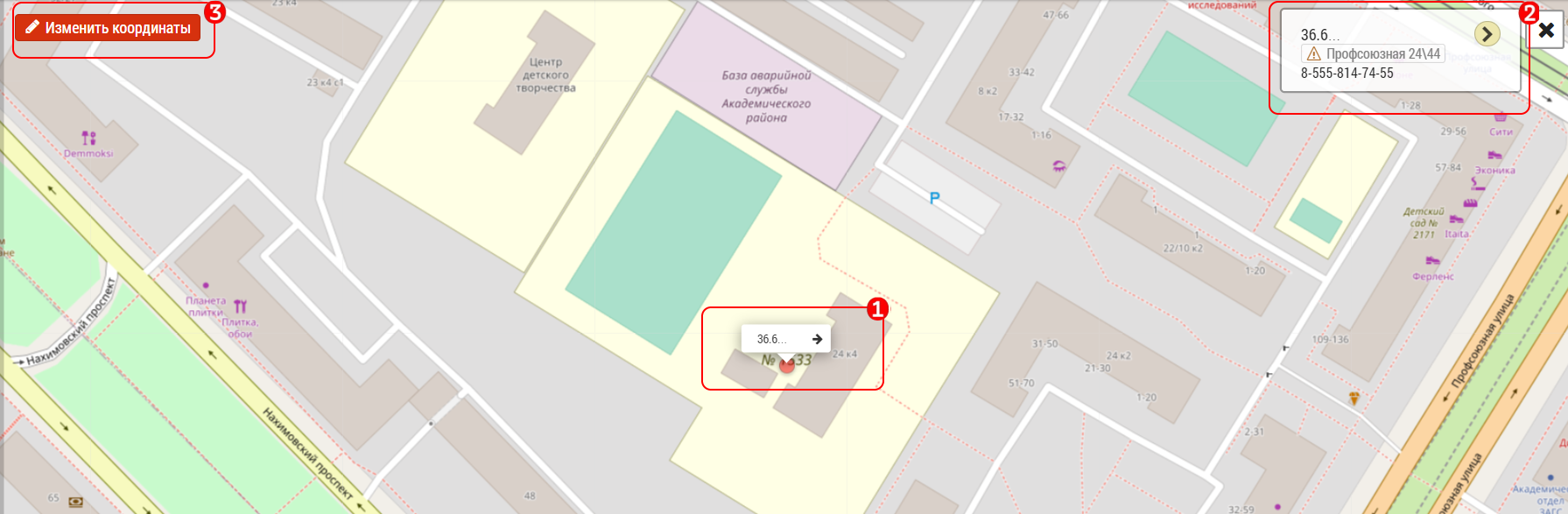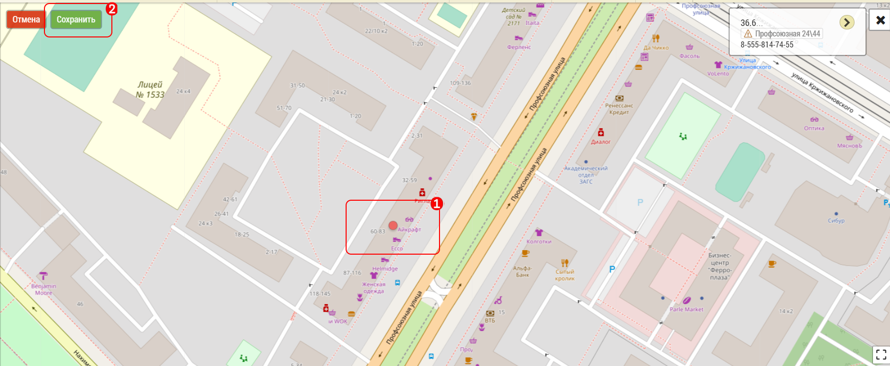 Если точка геолокации отображается на карте неверно, и программа пишет вам что до объекта более 150 м, измените координаты на карте Медпред