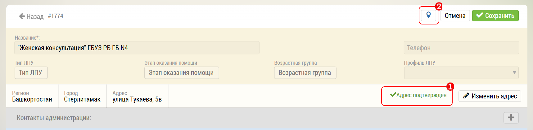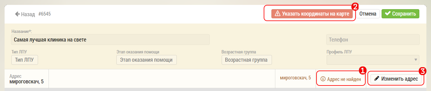 - Убедитесь, что объект (клиника или аптека) имеют правильный, геоверифицированный адрес.